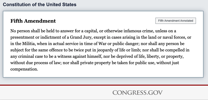 이건 바로 미국 헌법 5조에서 유래된 표현입니다.